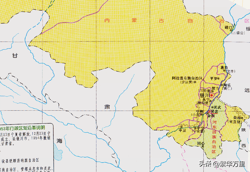 隨著寧夏回族自治區的建立,甘肅省與寧夏回族自治區之間的區劃框架,徹底穩定下來。不得不說,在西北地區,陜西、甘肅、寧夏之間的互動性非常強,很多方面的習慣也比較接近。
