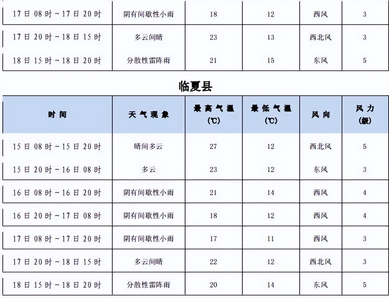 2023年中考期間臨夏州天氣預報