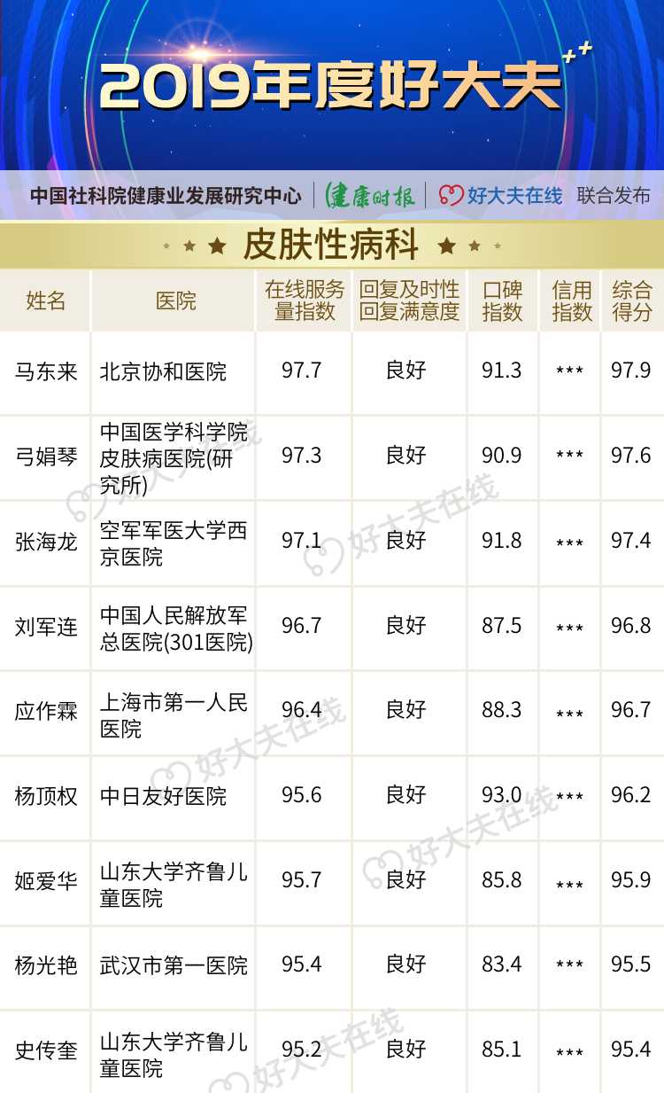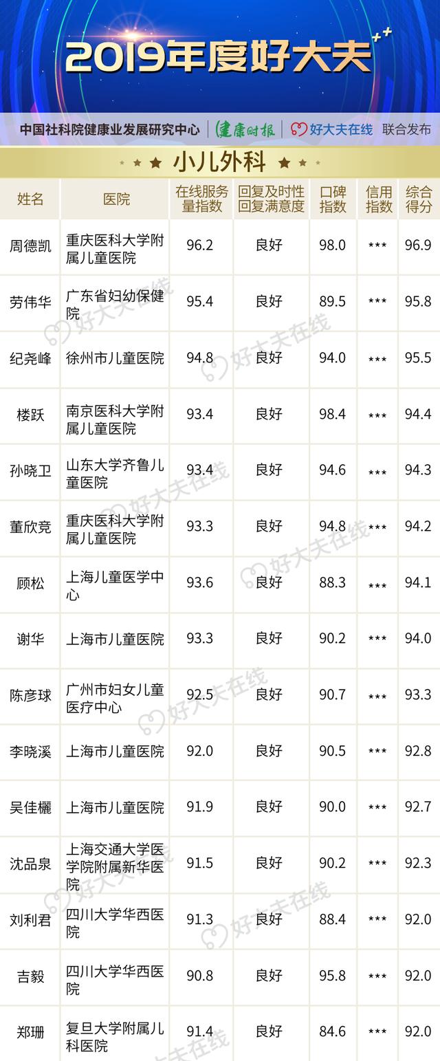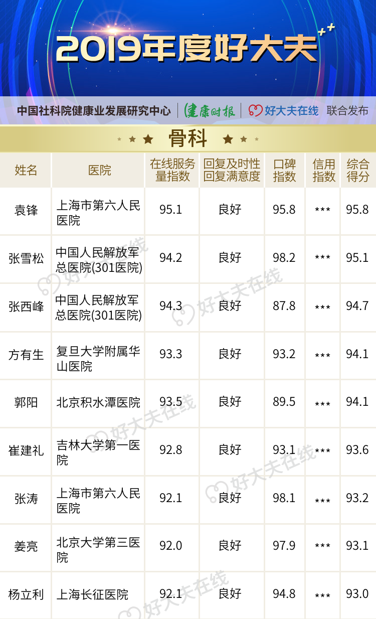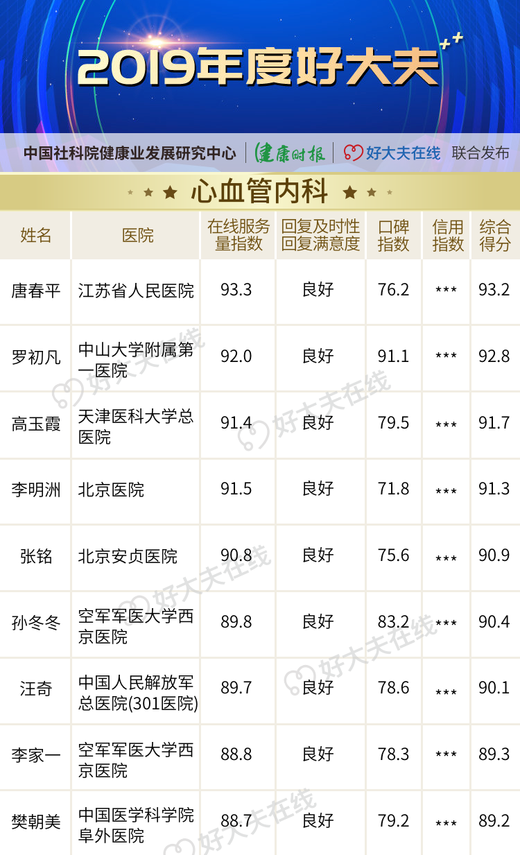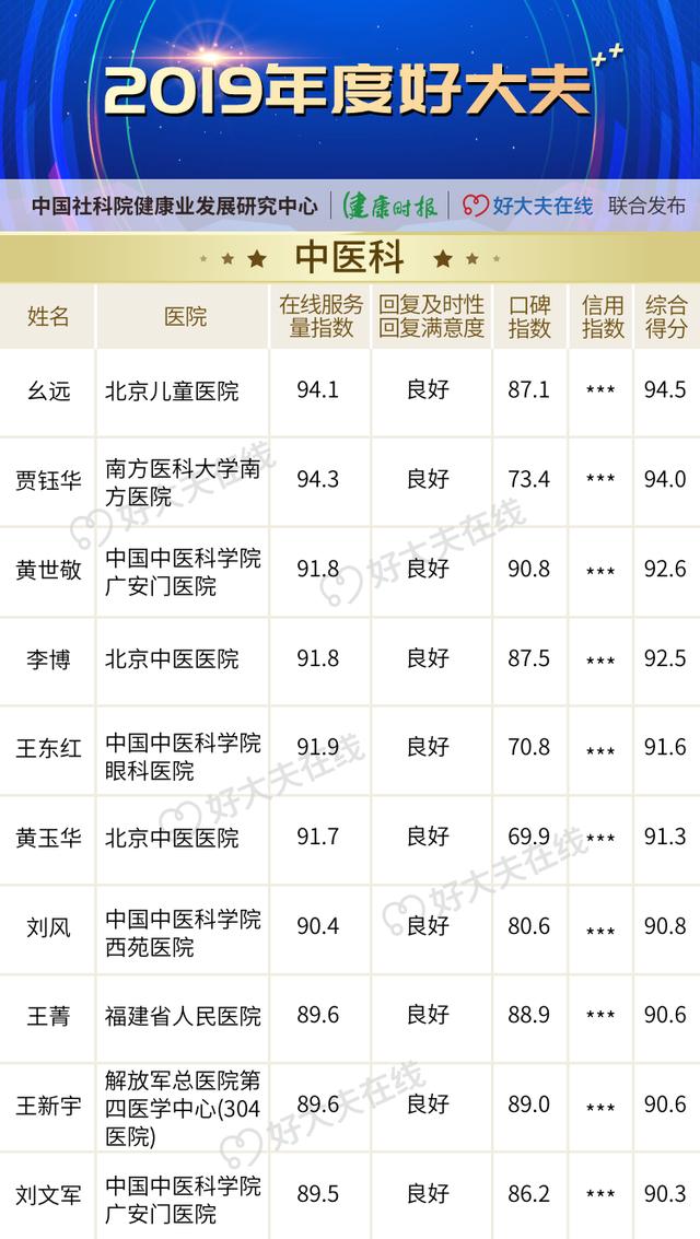 ?1月4日,中國社科院健康業發展研究中心、健康時報(人民日報社主辦)、好大夫在線,聯合發布2019年度好大夫榜單。上榜醫生以全國知名三甲醫院的骨干醫生為主。