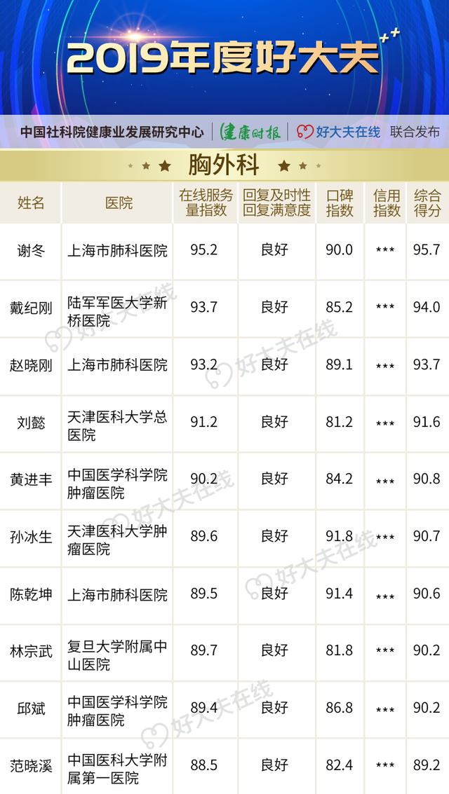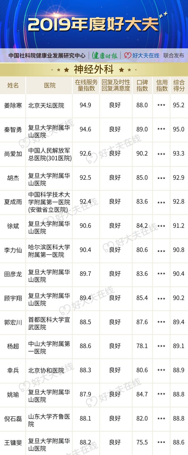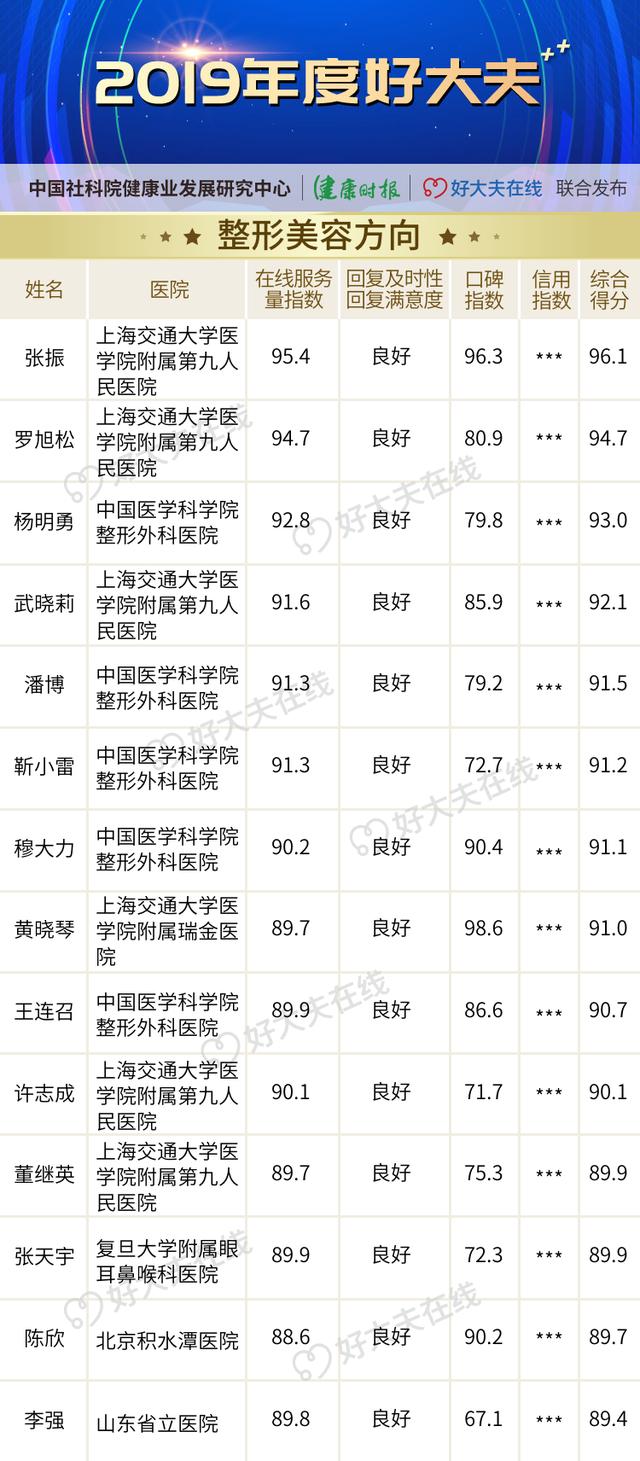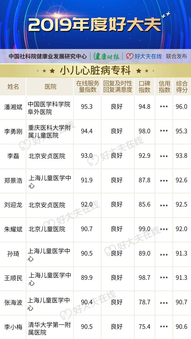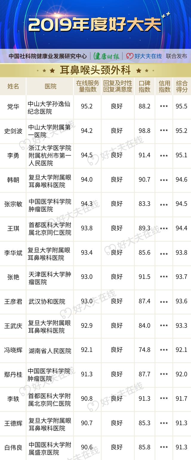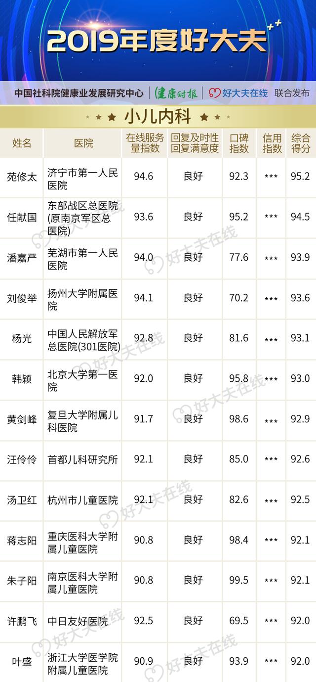 ?1月4日,中國社科院健康業發展研究中心、健康時報(人民日報社主辦)、好大夫在線,聯合發布2019年度好大夫榜單。上榜醫生以全國知名三甲醫院的骨干醫生為主。