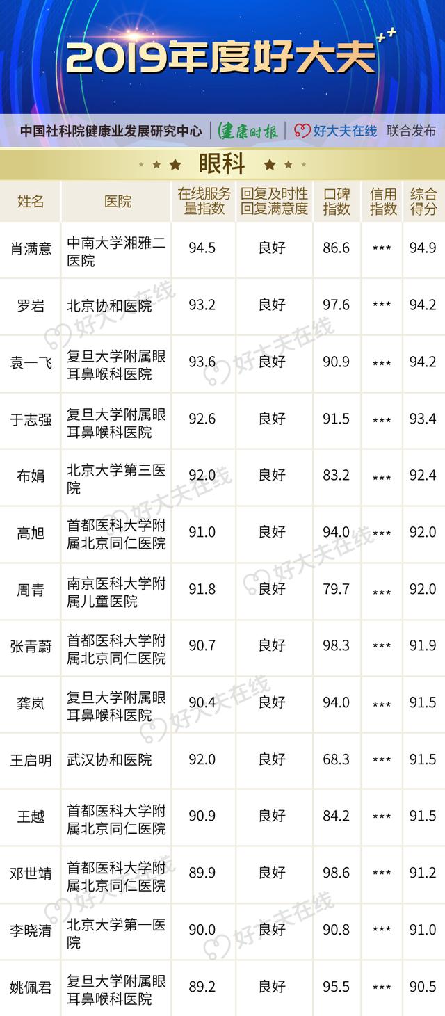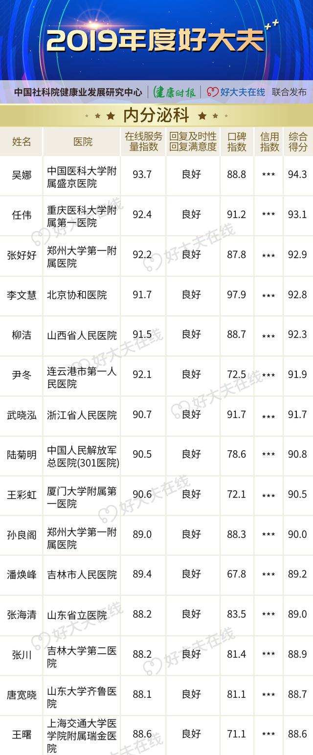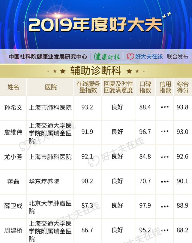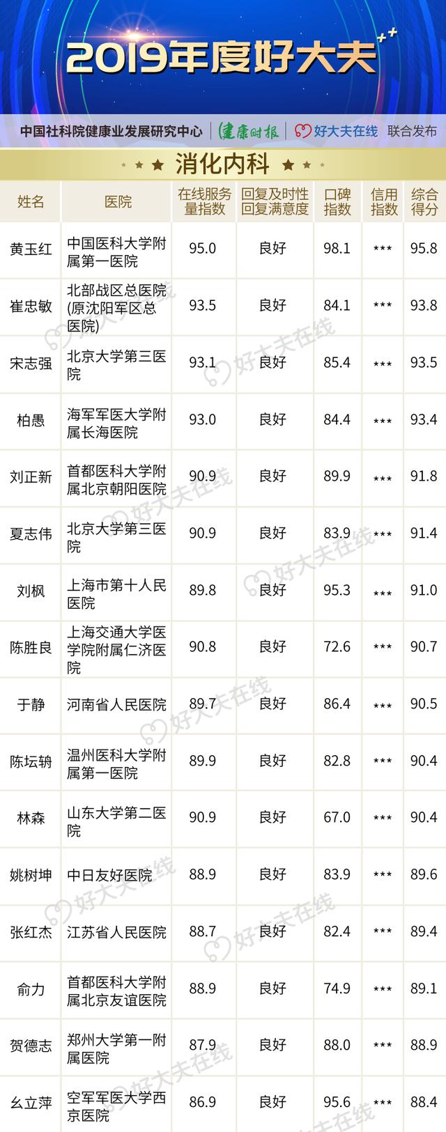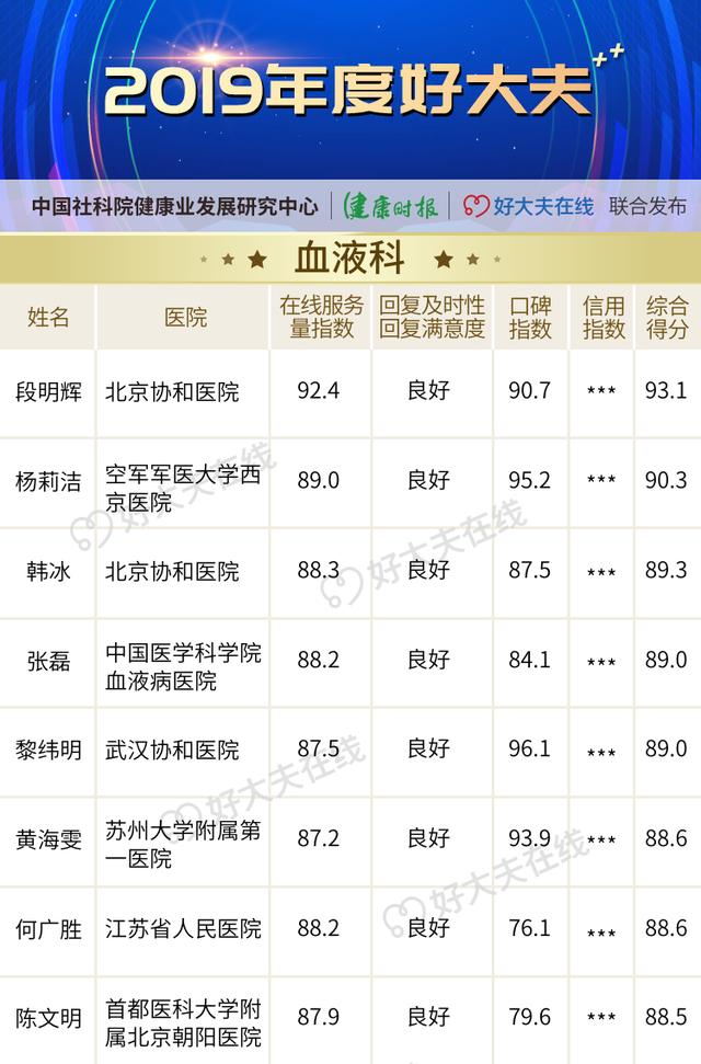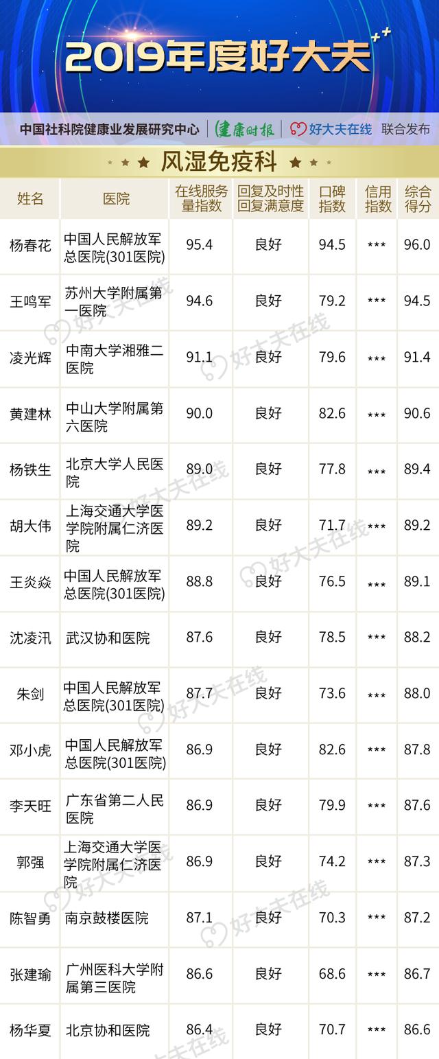?1月4日,中國社科院健康業發展研究中心、健康時報(人民日報社主辦)、好大夫在線,聯合發布2019年度好大夫榜單。上榜醫生以全國知名三甲醫院的骨干醫生為主。