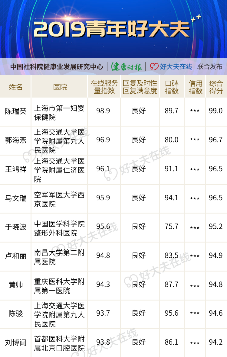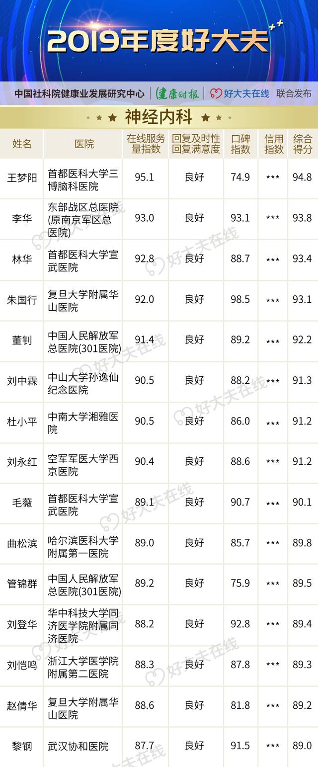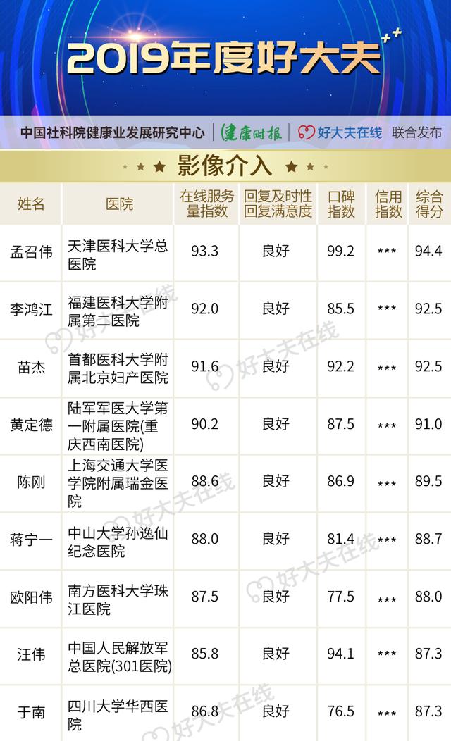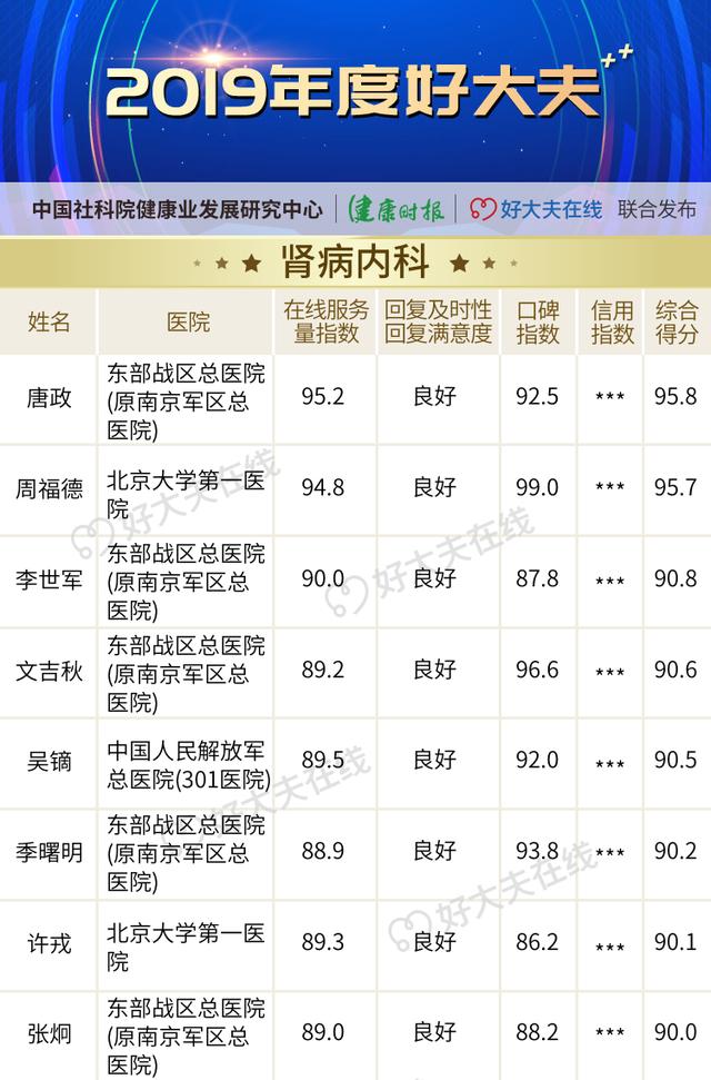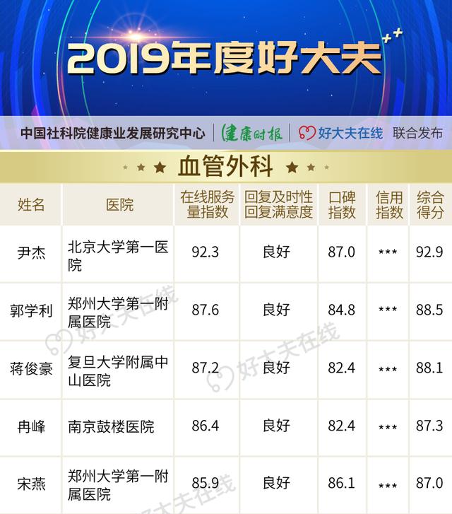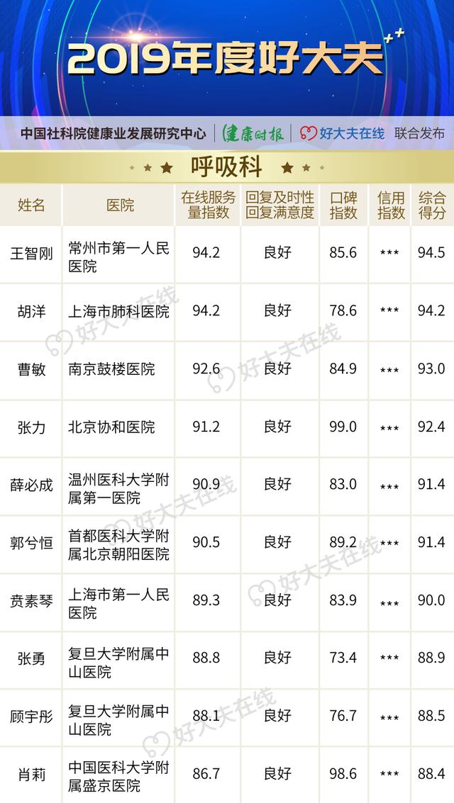 ?1月4日,中國社科院健康業發展研究中心、健康時報(人民日報社主辦)、好大夫在線,聯合發布2019年度好大夫榜單。上榜醫生以全國知名三甲醫院的骨干醫生為主。