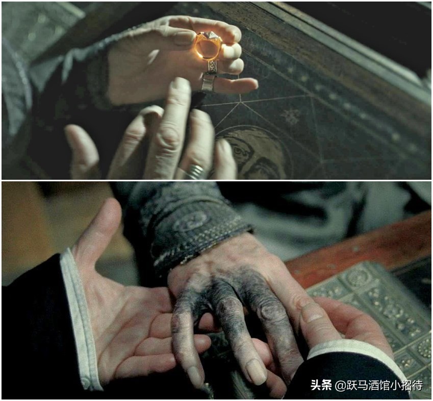 此時鄧布利多對自己家人的渴望戰勝了理智,把這枚戒指帶到手上,完全忘記了伏地魔的詛咒還沒有消除。這導致了鄧布利多的右手被廢,后來西弗勒斯·斯內普告訴他詛咒終將擴散至其全身,他最多只有一年時間可以活,所以才有了鄧布利多讓西弗勒斯·斯內普結束自己生命的計劃。