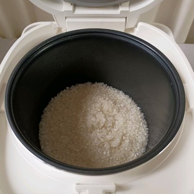 2、大米淘洗干凈,放入電飯煲