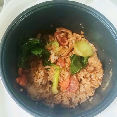 零失敗的煲仔飯!敲好吃! 疫情期間,又要少出門了!還是乖乖在家,倒騰我的廚房,給家人做點美食吧!今天用GEGK智能電飯煲做廣式臘腸煲仔飯! 準備食材 廣式臘腸 —————— 一根 干香菇 —————— 6朵 青菜 —————— 一小顆 胡蘿卜 —————— 一小段 大米 —————— 500克 生抽 —————— 一勺半 老抽 —————— 一勺 零卡糖 —————— 一小勺 麻油 —————— 二滴 黑糖耗油 —————— 一勺 將臘腸切片,用開水泡下 胡蘿卜去皮切片,青菜洗干凈 香菇用開水泡開,香菇水不要倒掉哦! 大米淘洗干凈放入GEGK智能電飯煲,倒入香菇水,(切記:不要全部倒入哦,香菇水里面有沉淀物,水量不夠加入少許純凈水!)煮飯水量跟平時一樣! 觀察電飯煲煮成稀飯時,放入香腸胡蘿卜繼續燜煮! 這時候不粘鍋里放入純凈水煮開,放入青菜,滴入麻油,煮至斷生。 所有調料放一起混合均勻 待飯煲顯示還有3分鐘時,放入青菜,倒入調料,繼續燜煮3分鐘! 時間到,好香的煲仔飯!翻拌下即可開飯啦!個人喜好廣式臘腸,咸甜口味,色香味俱全,太好吃了!