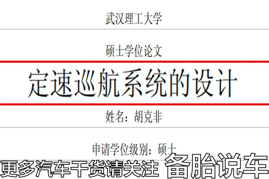 武漢理工大學胡克非有篇碩士論文,《定速巡航系統的設計》。