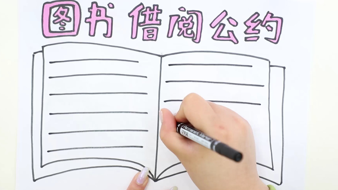 1、我們先來畫出裝飾畫,畫出一個小女孩坐在一本書上,畫上文本框,寫上我們的主題圖書借閱公約,選擇橘黃色和藍色畫上文本框的顏色;