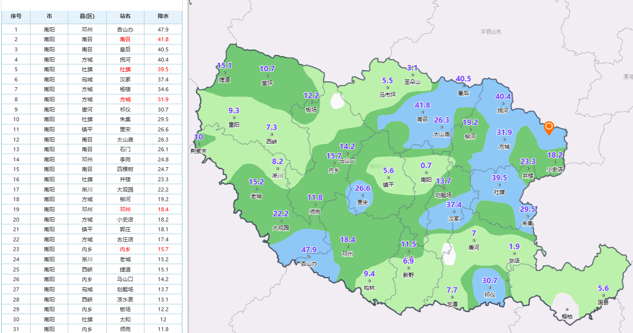 降水: 8月20日06時至8月21日06時我縣部分鄉鎮出現出現陣雨、雷陣雨,雨量分布不均,日降水量最大為黑龍鎮42.3㎜,各鄉鎮累計降水量如下: