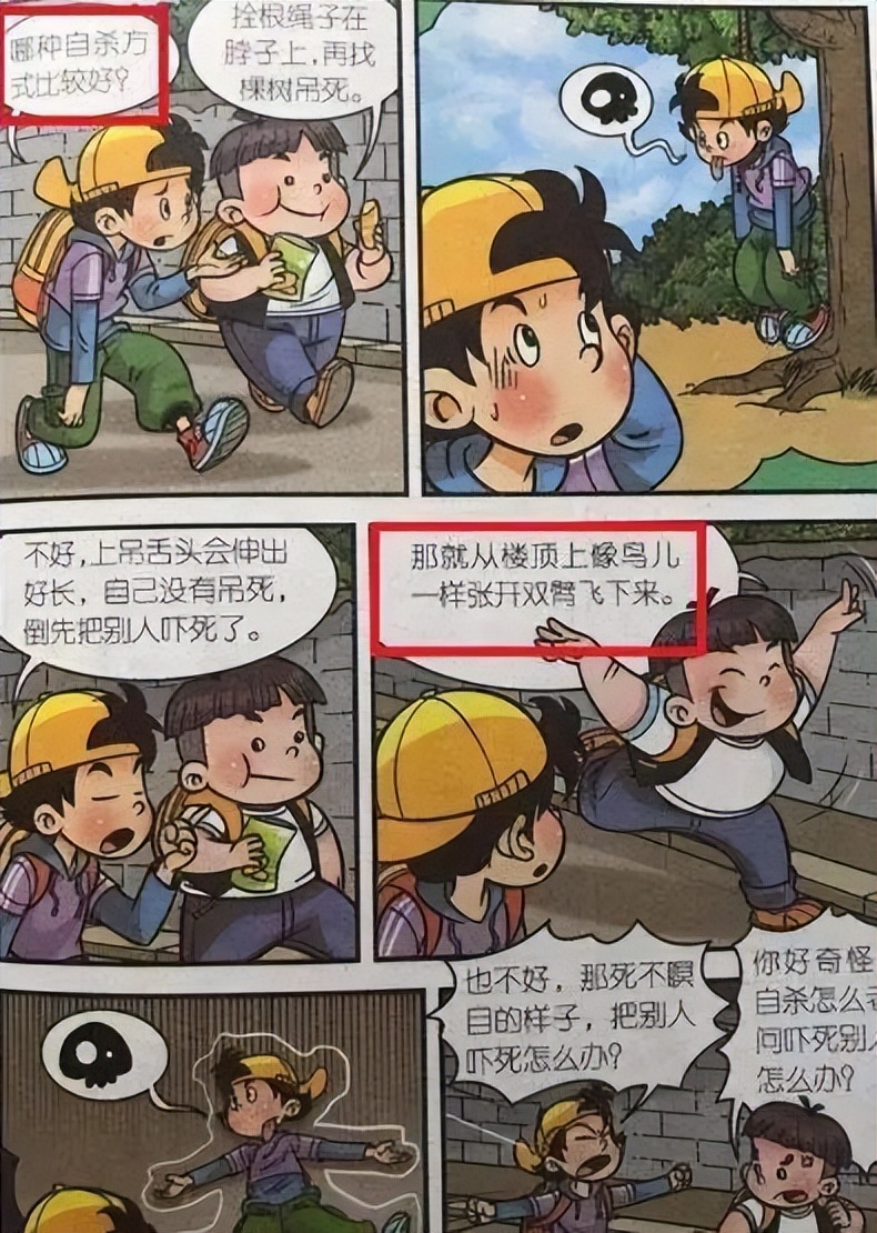 在網上傳播的是該作品的漫畫改編版的幾頁。封面新聞記者仔細閱讀,其中馬小跳與同學的對話中,的確涉及到“自殺”這個話題。