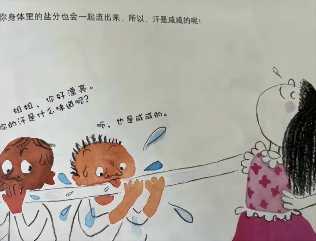 該繪本是有“江蘇鳳凰少年兒童出版社”出版,用意是從孩子的角度去發文以及作答,解答有關人體流汗的相關知識,讓孩子們能夠更好的理解。
