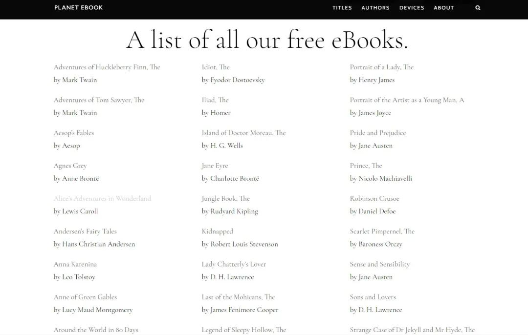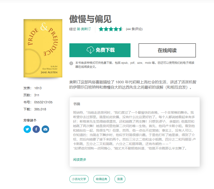 這個網站我愿稱之為yyds,收集了超50000本免費電子書。并且它的分類也很詳細,包括:浪漫小說、動作與冒險、懸疑驚悚、歷史小說、文學小說、科幻小說、隨筆、商業等等。