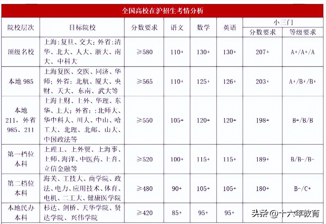 通常上海本地211院校要達到530分以上,985則要570分以上。