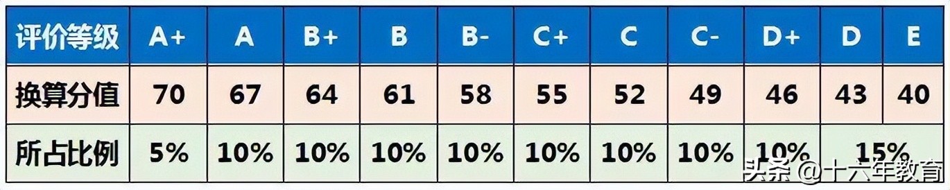 等級考共分為11個等第,每個對應的計入高考的分值如下: