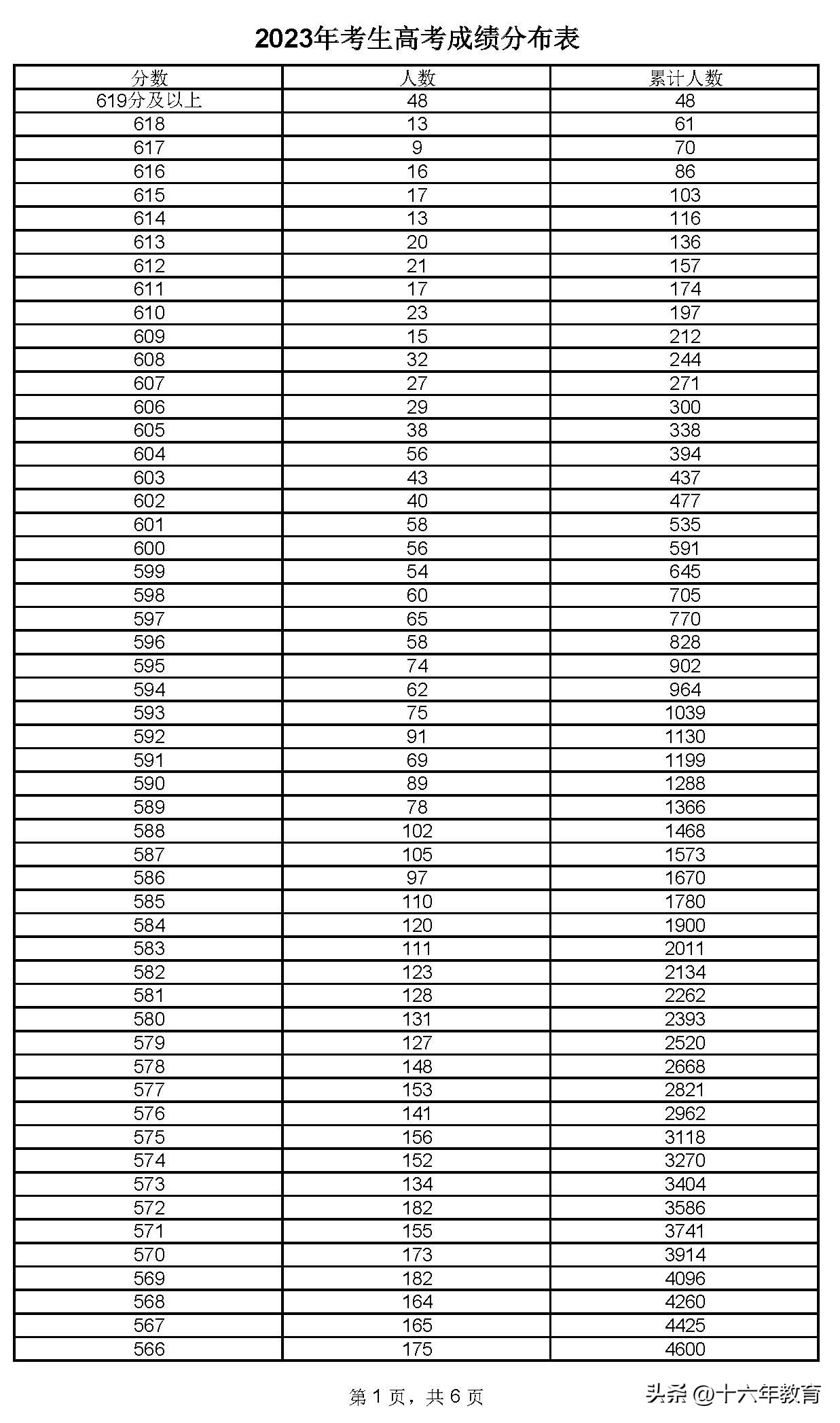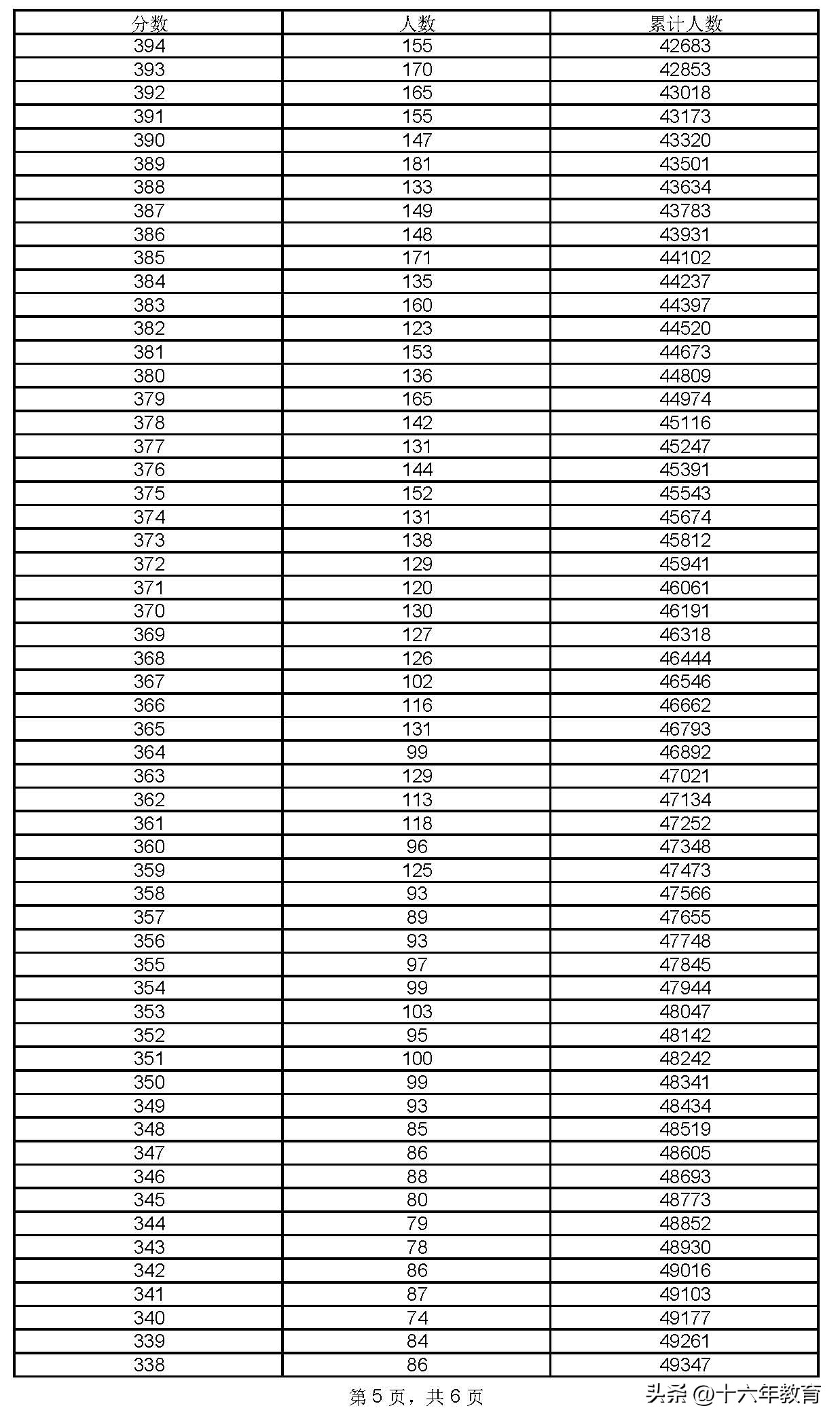 五、2023年上海高考一分一段表