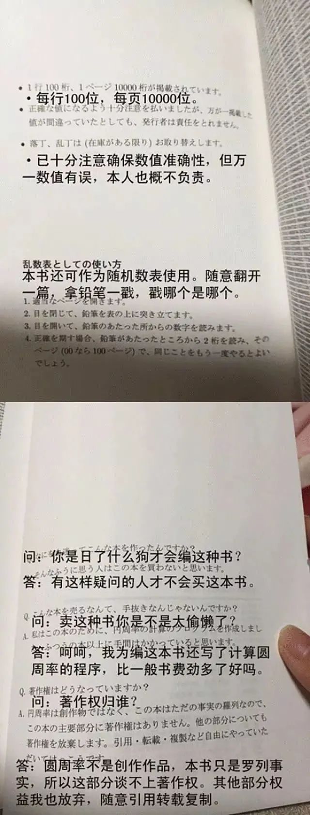 出書又是怎么回事呢?日本有個很迷的社團,出版過一本書叫做《円周率1000000桁表》,1996年就開始發售了,至今依然可以在日本亞馬遜上買到。大約合人民幣17元一本。
