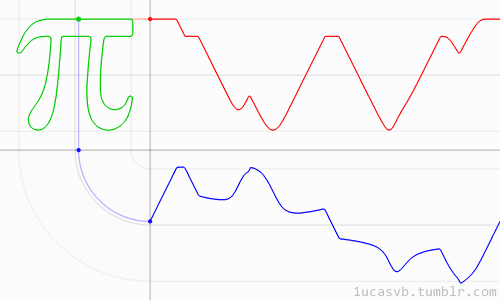 不過這也沒那么神秘,想象一下一條由許多圓弧交替拼接組成的河流,就能直覺上理解為何這個數值是π了。