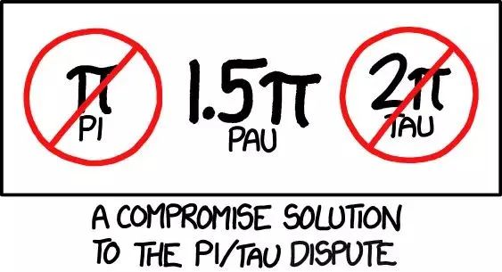 而另一位美國數學家麥克·哈特爾(Michael Hartl)則建立了網站 tauday.com,呼吁人們用希臘字母 τ(tau)來表示“正確的”圓周率 C/r = 6.2831853... 。哈特爾建議大家以后在寫論文時,用一句“為方便起見,定義 τ = 2π ”開頭,推廣這一更為科學的圓周率記號。