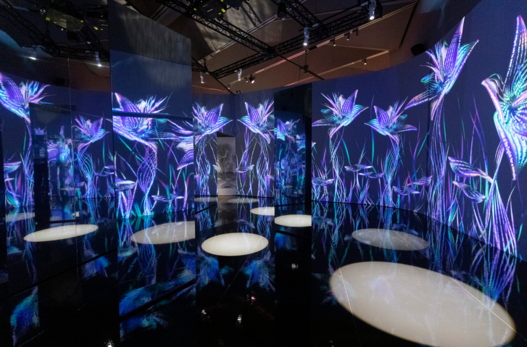 展覽以一件名為《鏡中奇緣,靈感乍現》的數字藝術裝置畫上句號。從以跳入兔子洞的方式進入下沉式展廳,到離開展覽前通過鏡子向外看,觀眾們是否會享受這樣一場博物館內的奇境之旅呢?