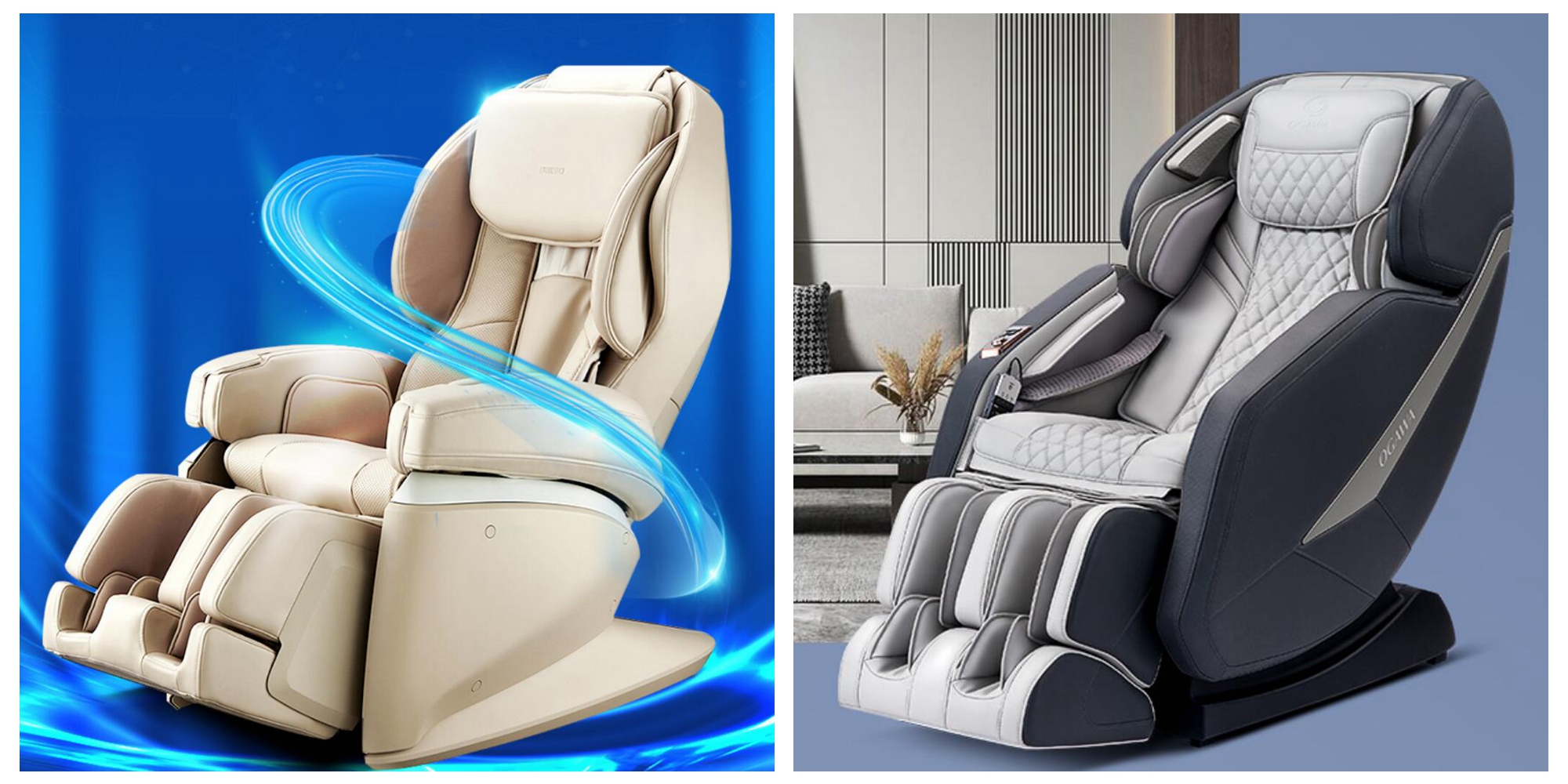 右邊是我最近寫過的1W+產品奧佳華7688Pro,國內目前在售的主流按摩椅,在造型上偏向太空艙的風格,整體高級感比較強。