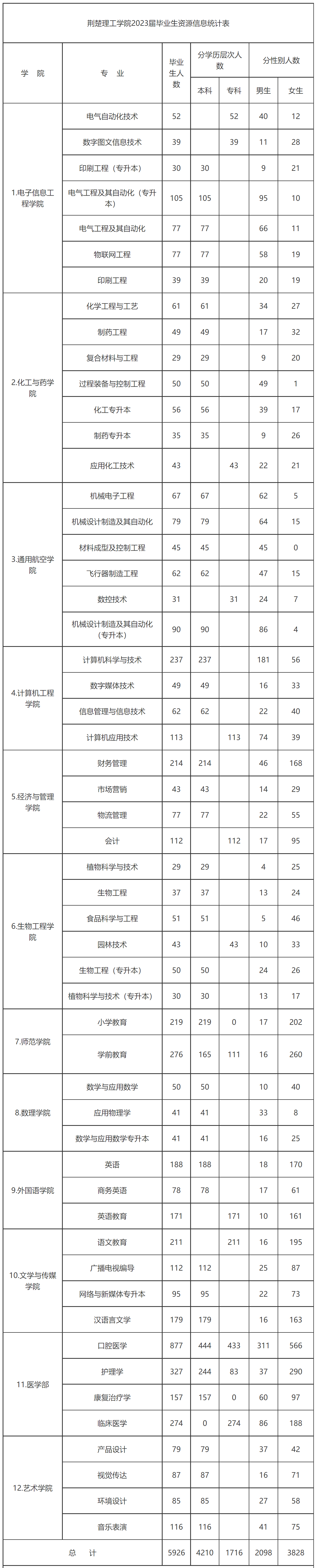 第三,還要看看2023屆畢業生的專業分布。這個倒是簡單,我們看看荊楚理工學院2023屆畢業生資源信息統計表上的有關數據就行了。