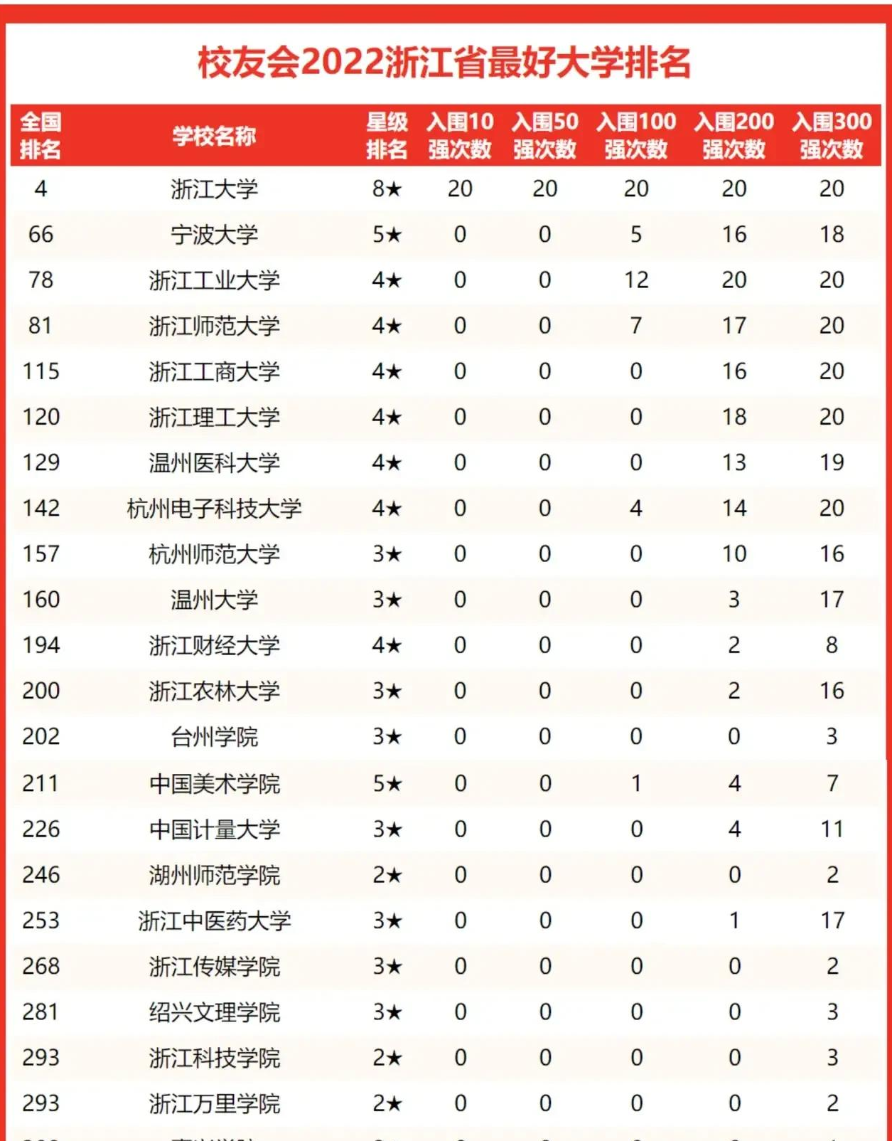 浙江省大學排行榜的揭曉無疑為我省的教育事業注入了一針強心劑。