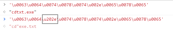 舉個栗子,你創建一個 exe 文件,命名為 cdtxt.exe,然后重命名,并在 cd 后面插入一個 RLO 控制字符( 從右到左顯示 )。
