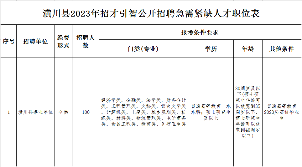 2.潢川縣2023年招才引智公開招聘急需緊缺人才職位表