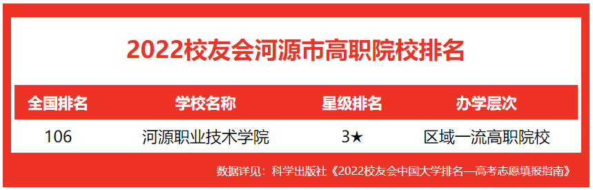 導讀河源職業技術學院雄居校友會2022河源市高職院校排名榜首2022校友會中國大學排名評價指標體系