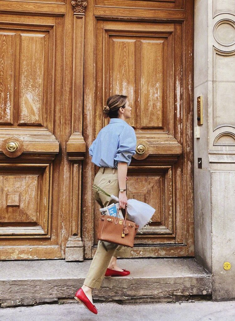 一雙小紅鞋是最美的點綴,穿著者詩意浪漫的法式風情藏也藏不住,氛圍感與生活感的疊加,讓畫中人物美得有種候麥電影的質感▼