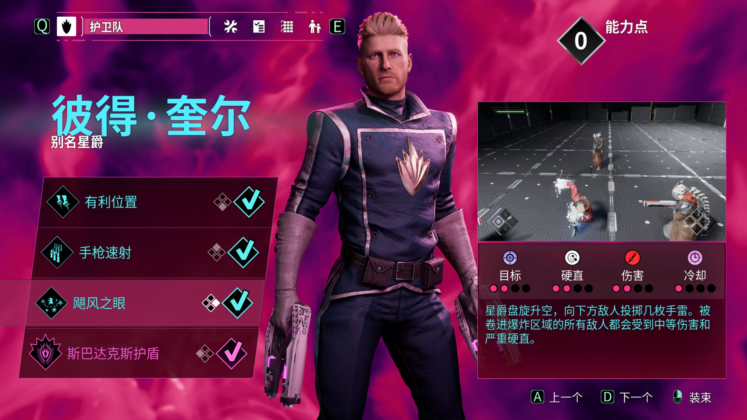 這些技能是共用CD的所以在戰斗中需要根據情況來進行取舍。但是紫色“大招”與一般技能不共用CD,并且都特別強力——比如火箭是召喚炮臺,星爵是長時間無敵的護盾等等,大招沒法通過技能點學習,而是只能隨著劇情流程解鎖。
