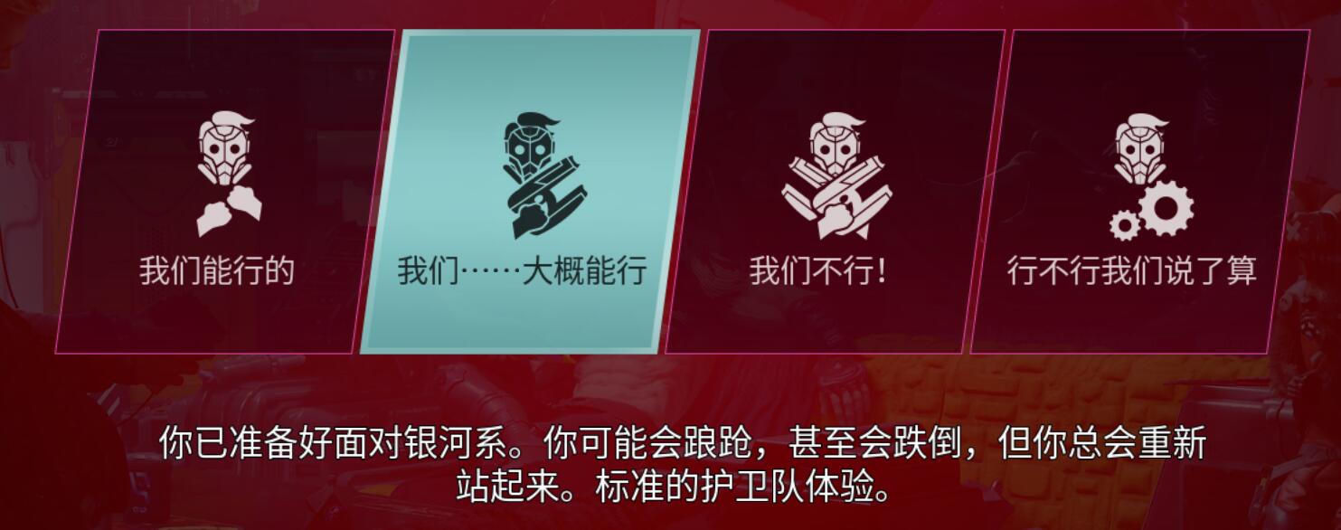 根據回話的結果,有可能是好(附帶持續的BGM和超強力特效,比如無限制使用技能,短時間無敵等)、中、差,不過抱團必然可以補滿全部狀態和復活全部隊友,由于在戰斗中星爵陣亡即游戲失敗,所以靈活利用星爵的大招無敵護盾和抱團來保命是高難度通關的重要技巧。