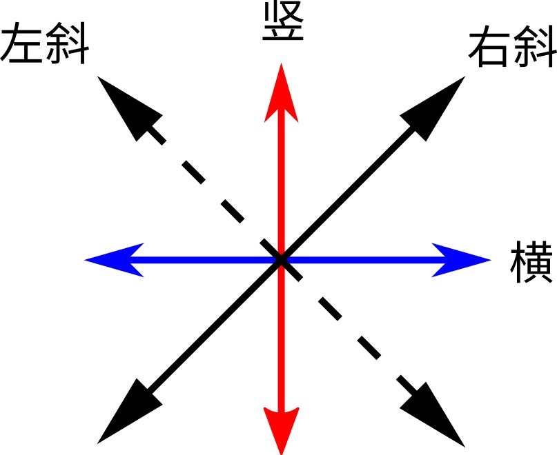 圖14:一個光子可以有很多偏振態,如豎偏振,橫偏振,左斜偏振,右斜偏振,等等。