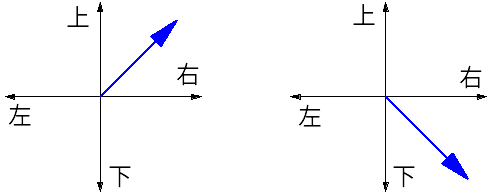 圖2:一個電子的自旋可以用一個箭頭來表示。第一個自旋有正的豎分量和正的橫分量。第二個自旋有負的豎分量和正的橫分量。一束電子內不同的電子會帶有不同的自旋,其可用不同的箭頭來描寫。