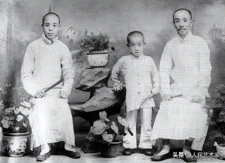 1919年,王洛賓(中)與父親王德禎(右)、大哥王獻庭(左)合影