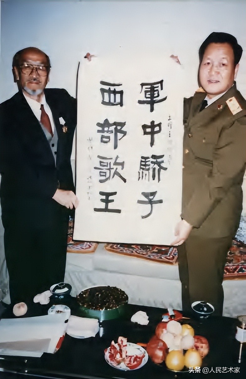 新疆軍區閻崇厚副司令員為王洛賓書寫“軍中驕子,西部歌王”