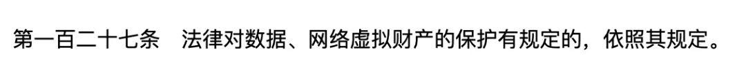 這時候就要搬出在騰訊案子里被提到的民法典 127 條:法律對數據、網絡虛擬財產的保護有規定的,依照其規定。