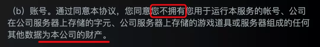 用戶對這些數據和虛擬財產享有使用權,但并不是所有權 ▼