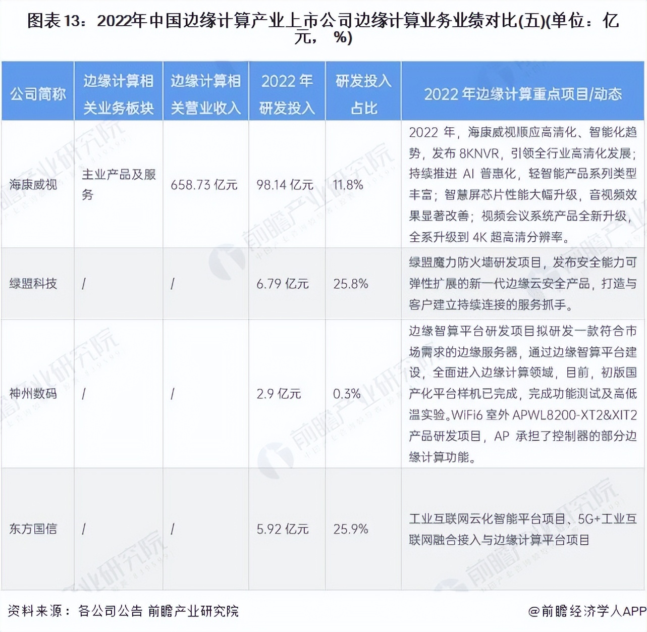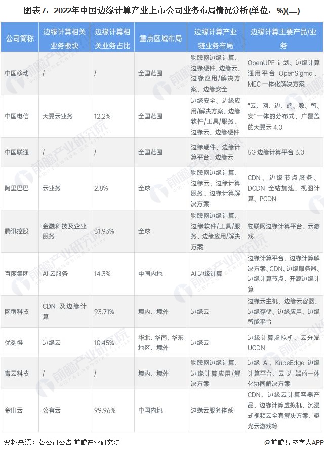邊緣計算產業上市公司業務布局對比