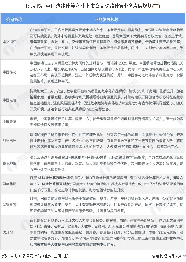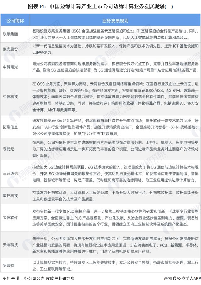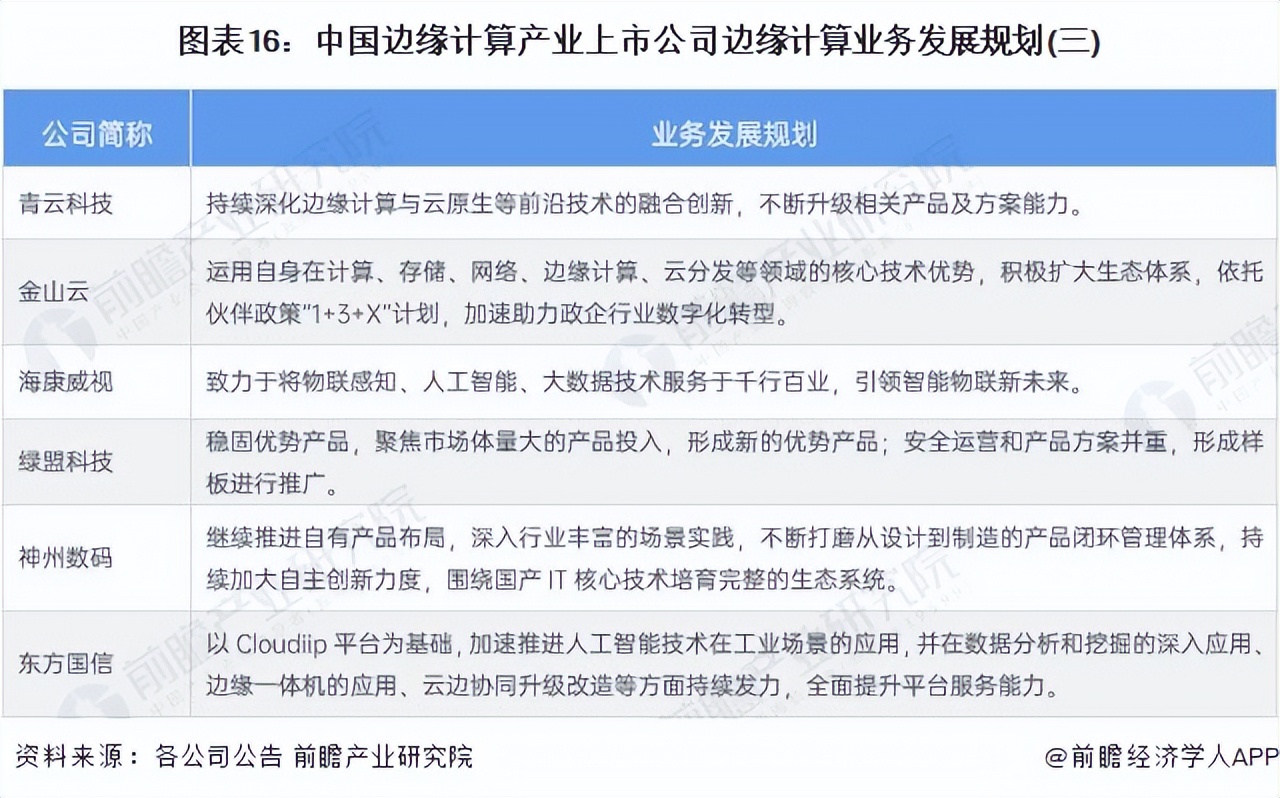 邊緣計算產業上市公司業務規劃對比
