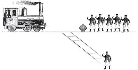 “電車難題”是倫理學領域最為知名的思想實驗之一,其內容大致是:一個瘋子把五個無辜的人綁在電車軌道上。一輛失控的電車朝他們駛來,并且片刻后就要碾壓到他們。幸運的是,你可以拉一個拉桿,讓電車開到另一條軌道上。但是還有一個問題,那個瘋子在那另一條軌道上也綁了一個人。考慮以上狀況,你應該拉拉桿嗎?