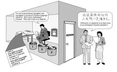 “中文房間”最早由美國哲學家John Searle于20世紀80年代初提出。這個實驗要求你想象一位只說英語的人身處一個房間之中,這間房間除了門上有一個小窗口以外,全部都是封閉的。他隨身帶著一本寫有中文翻譯程序的書。房間里還有足夠的稿紙、鉛筆和櫥柜。寫著中文的紙片通過小窗口被送入房間中。房間中的人可以使用他的書來翻譯這些文字并用中文回復。雖然他完全不會中文,Searle認為通過這個過程,房間里的人可以讓任何房間外的人以為他會說流利的中文。