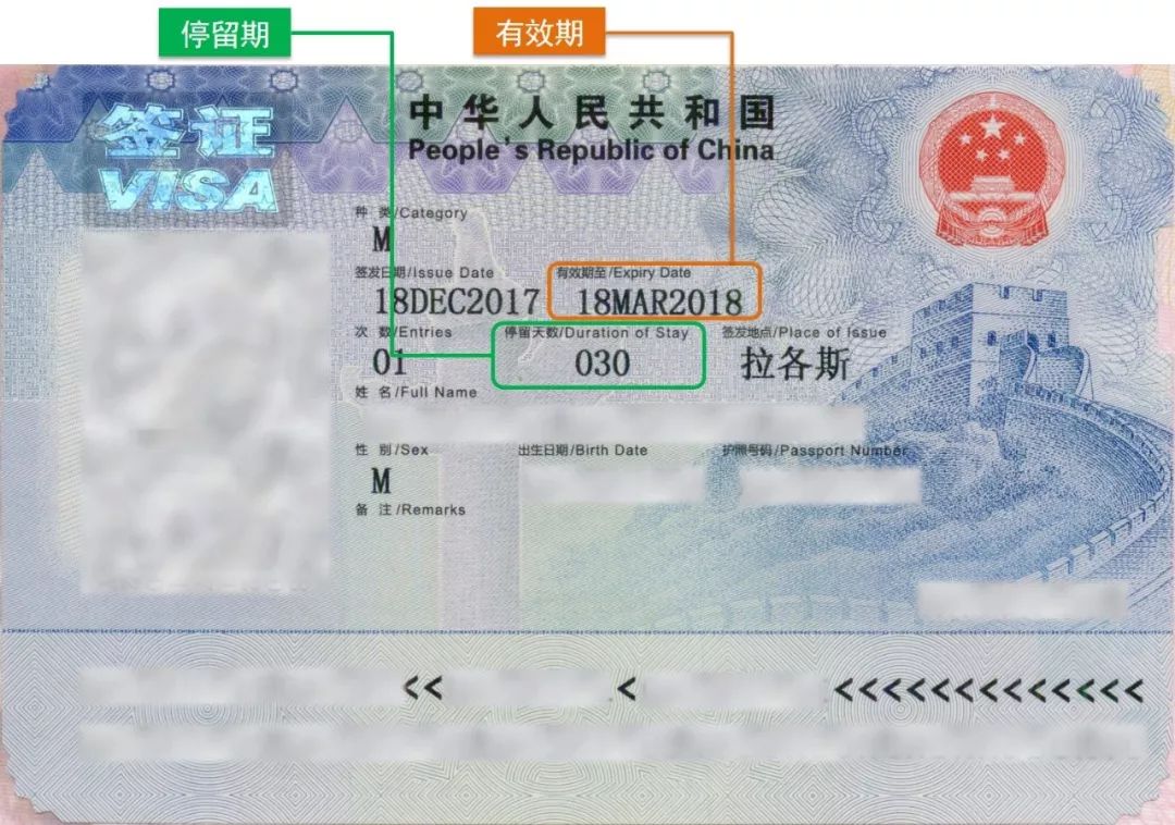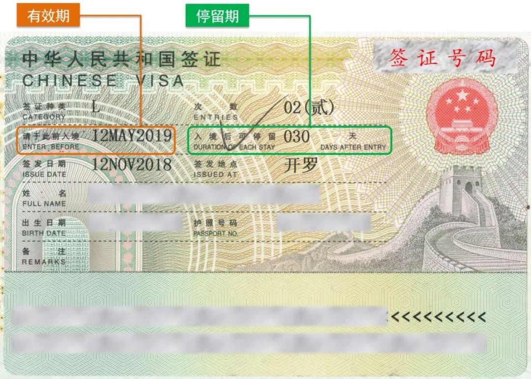 有效期("enter before"/"expiry date"):指持證人所持簽證入境的有效時間范圍。非經簽發機關注明,簽證自簽發之日起生效,于有效期滿當日的北京時間24時失效。