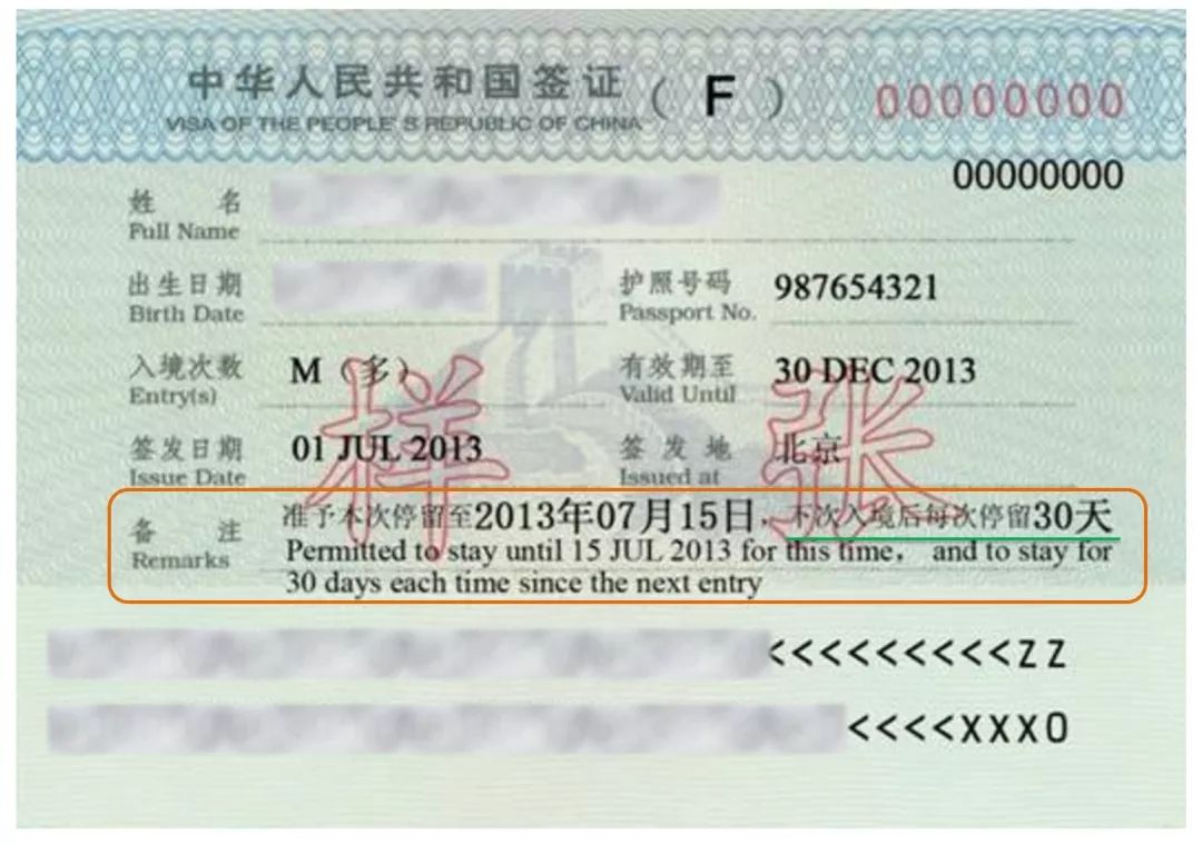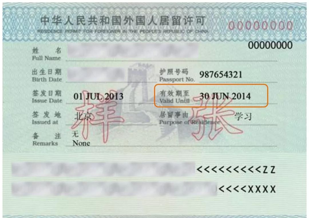 居留許可有效期和居留期相同,持有者可以從2013年7月1日起至2014年6月30日間,不限次數出入中國,但要在6月30日24時前離開中國。