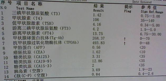 甲狀腺球蛋白抗體高 甲狀腺結節1一6級