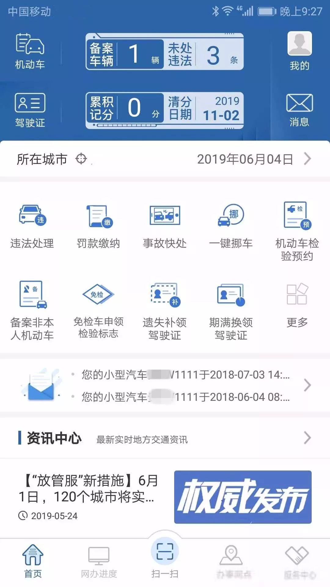 獲取交通違法、車輛年檢、駕駛證審驗等告知信息