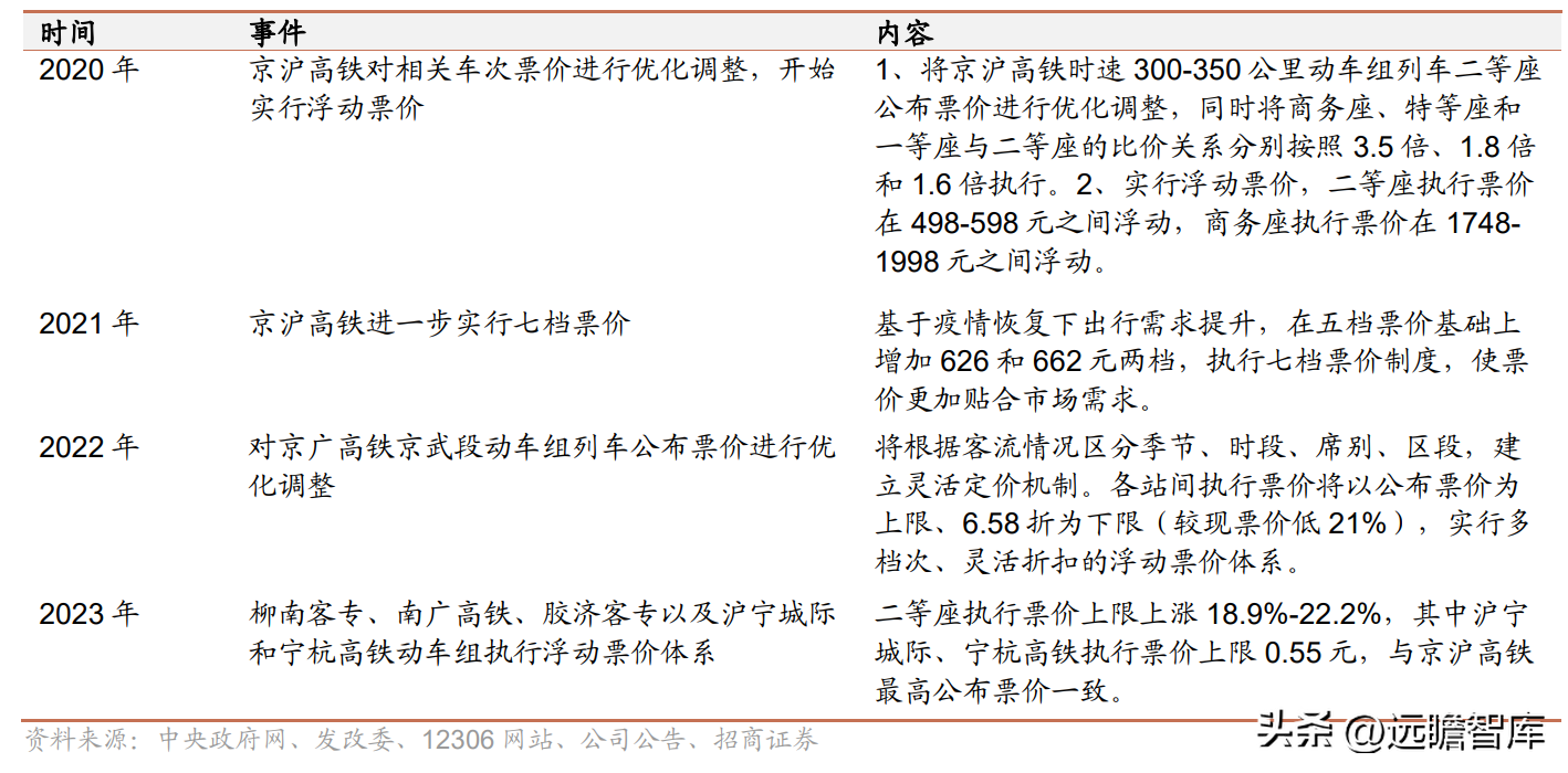 2016年起國家發改委提出高鐵客運票價可以由鐵路運輸企業自行定價,帶來浮動票價機制探索的新契機,伴隨出行需求持續增長,鐵路票價長期具備提價空間。
