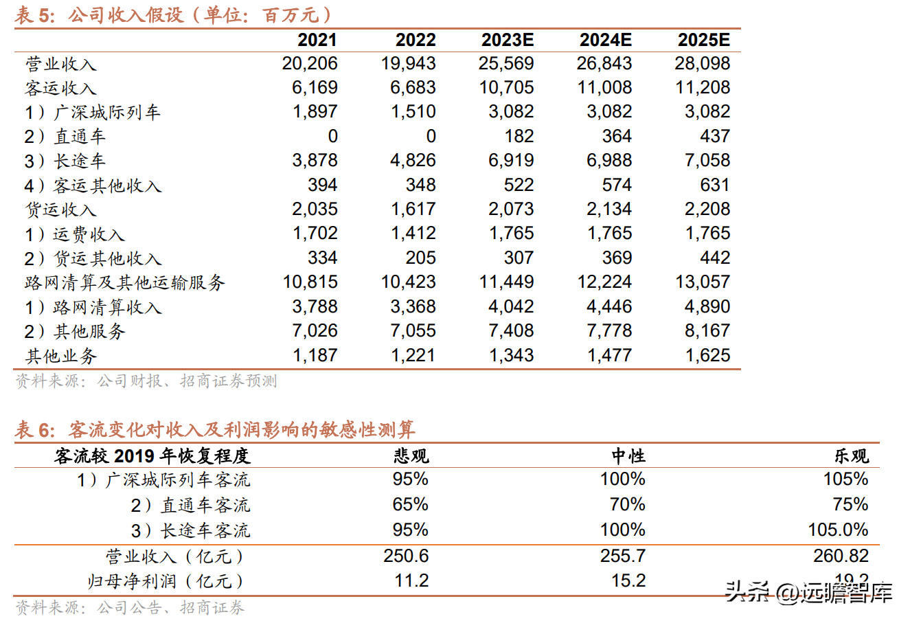 3)2023年受益于全國鐵路需求恢復,公司貨運和路網清算業務收入呈現修復式同比增長;2024-25年呈現穩健增長。