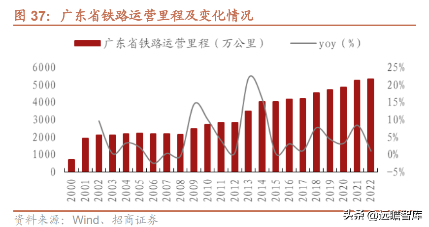 廣東省高鐵路網持續加密,鐵路布局不斷完善,截至2022年全省鐵路運營里程達5278公里,新增鐵路運營里程超800公里,其中高鐵運營里程達到2367公里。