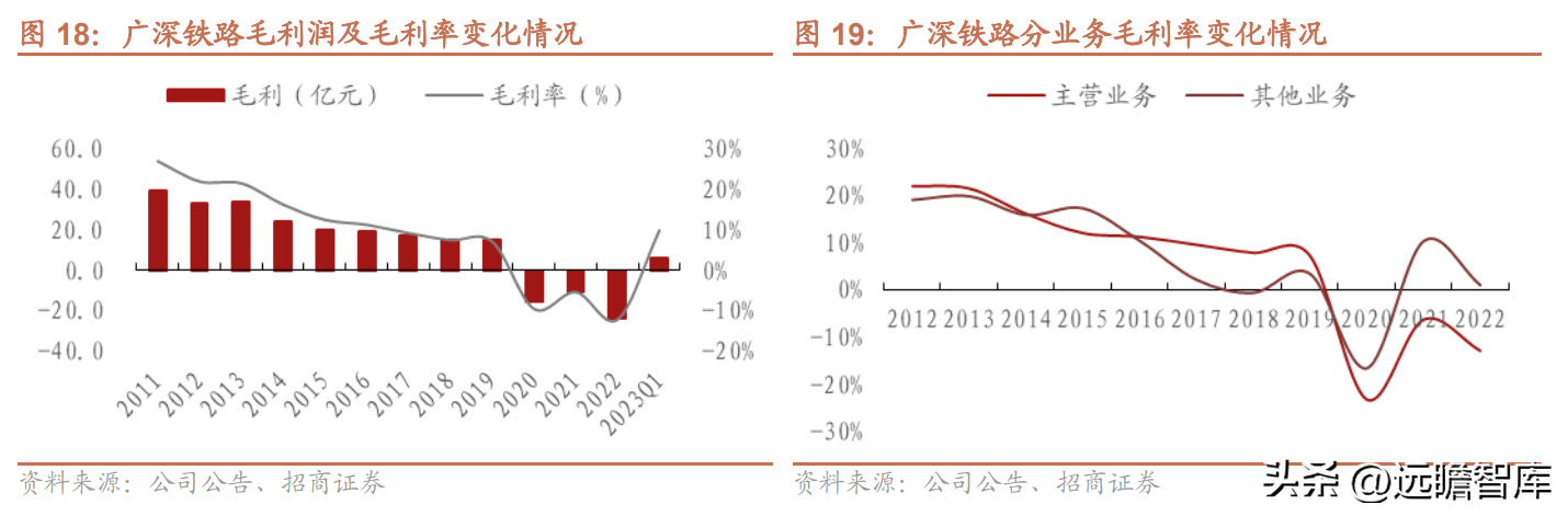 2023年以來伴隨客流持續恢復,過港直通車恢復運營,2023Q1公司毛利率提升至10%,在列車開行數量以及客座率未恢復至疫情前水平的情況下,長距離動車組以及高鐵動車路線的開行為公司毛利率提升做出貢獻,預計隨客座率持續上升及直通車業務持續修復,公司毛利率將持續提升。