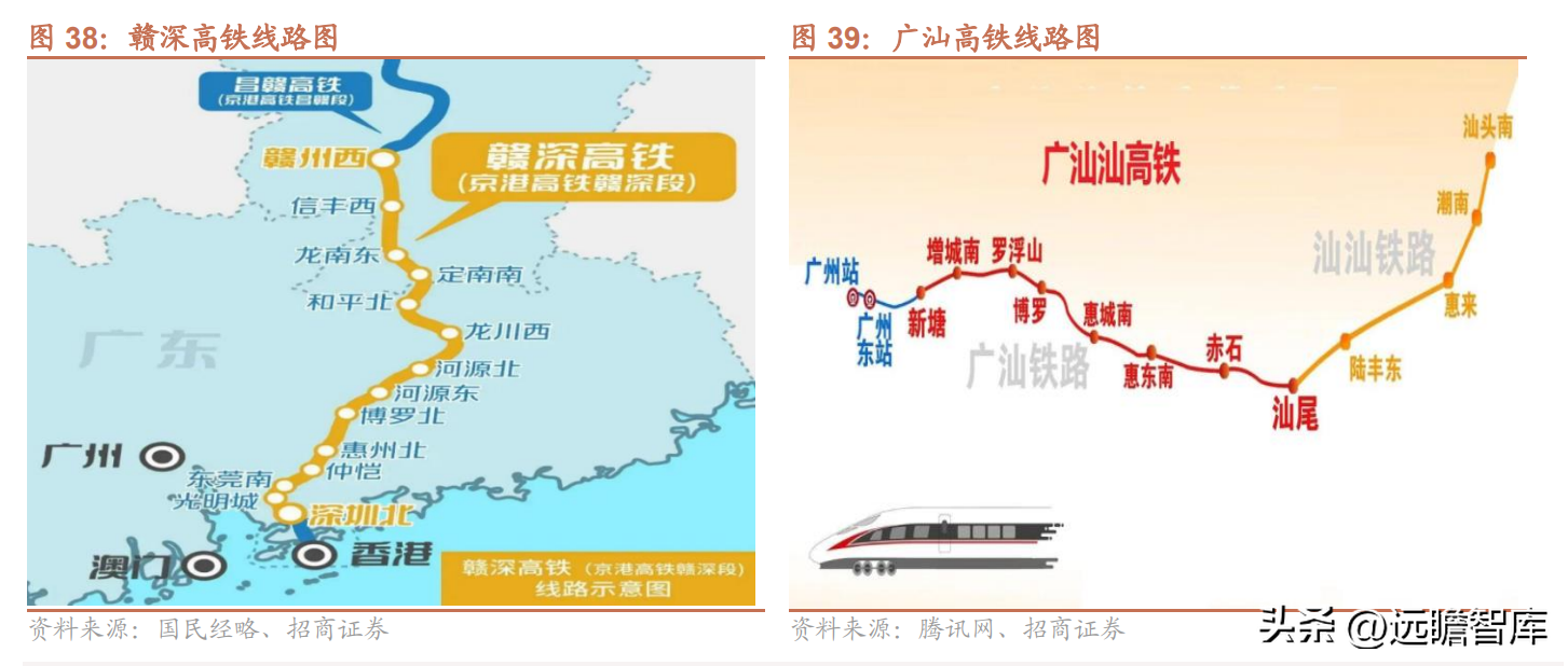 后續廣東省仍有多條高鐵即將投入運營,其中2023年9月廣汕鐵路有望正式開通運營,作為“八縱八橫”高速鐵路網連接線,是廣州通往粵東地區的高速鐵路通道,全長368公里,全程設立14個車站,預計通車后汕頭至廣州時間將由4小時縮減為1個半小時,未來還可通過廣湛高鐵與珠三角和粵西地區連接,與公司線路在新塘站相連接。